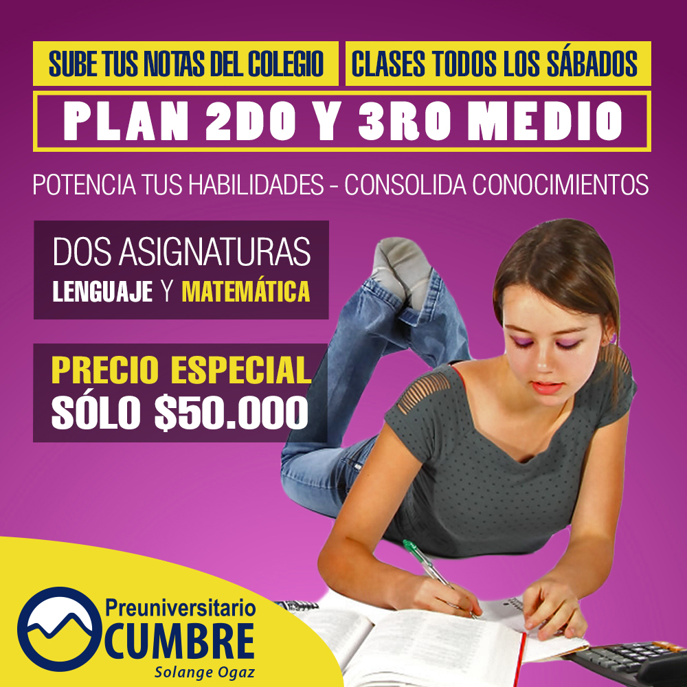 El plan segundo y tercero medio está destinado a crear hábitos de estudio, potenciar habilidades, consolidar conocimientos y mejorar las notas del colegio, preparando el camino hacia la PSU.